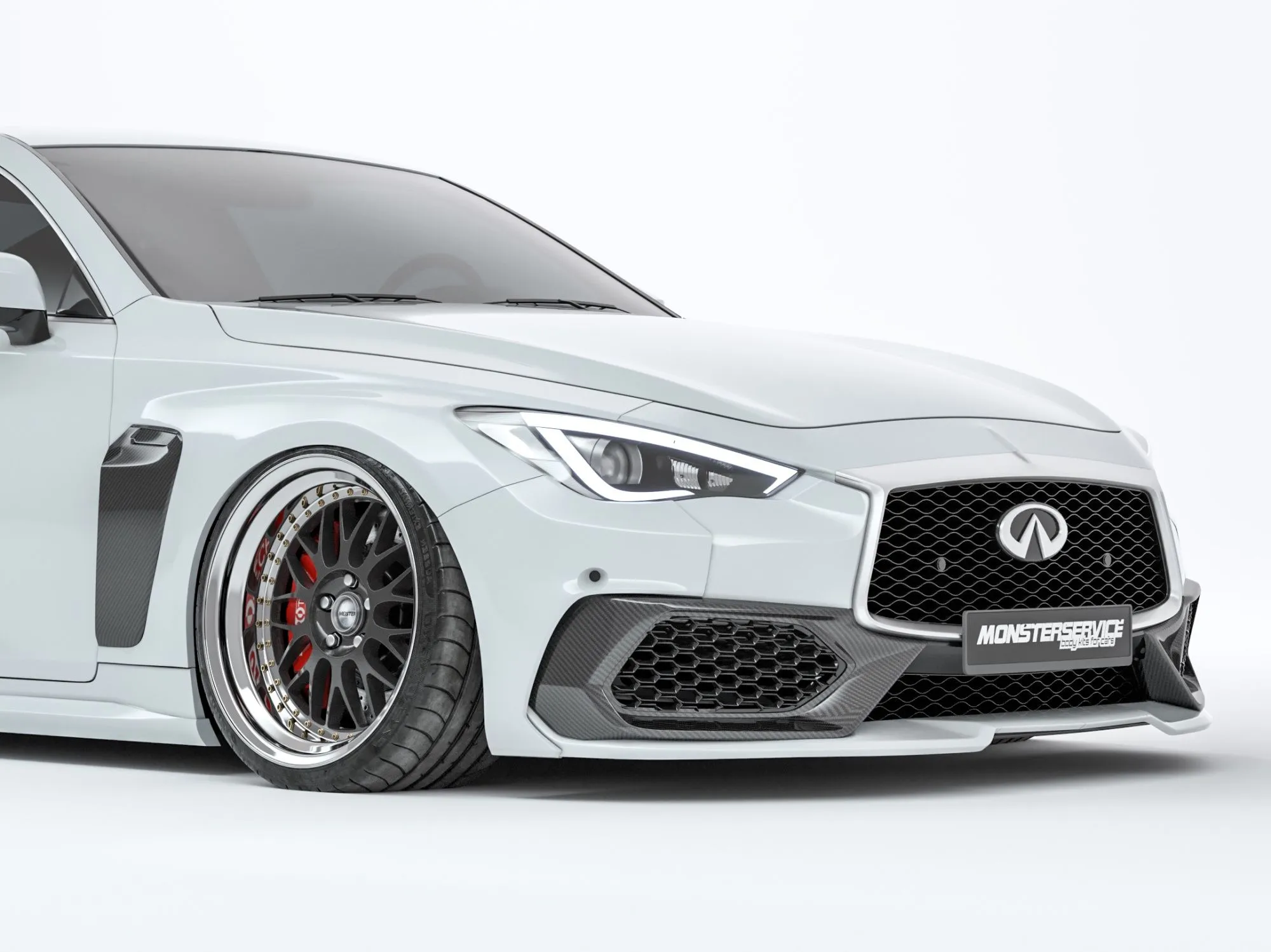 Front lip for Infiniti Q60 2016-2022. An excellent product that we developed specifically to complement the boring design of the OEM front bumper. Best deal on the market!