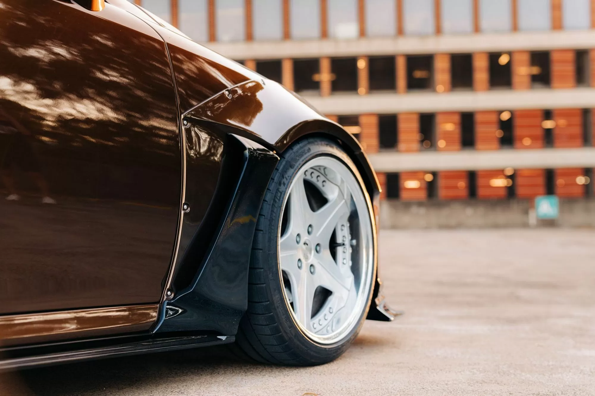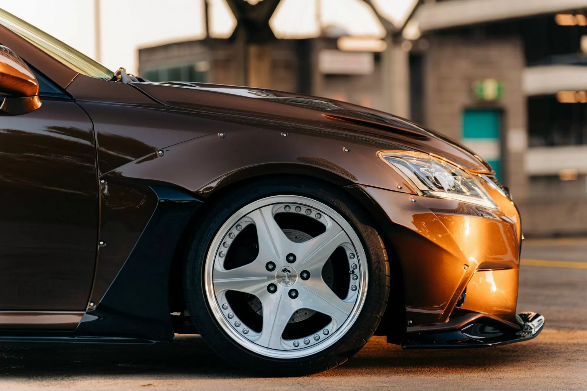 Photos of the car that is building with our kit, which includes a front lip, fender flares with side vents, side skirts and a rear bumper lip. Great color choice! Only in our opinion the suspension should be lowered, but the owner has his own views on this. In any case, great work! Owner : Jason Chau