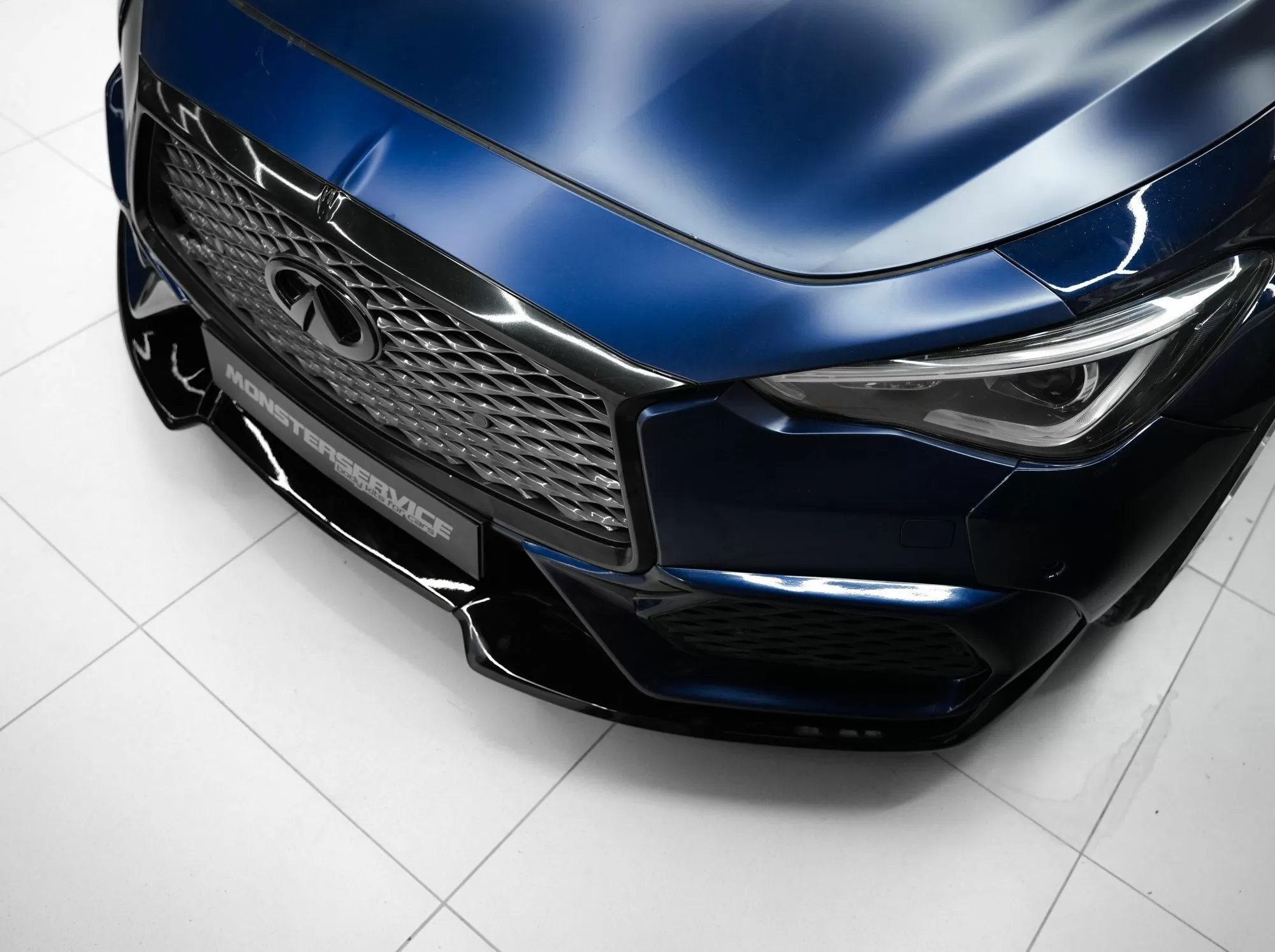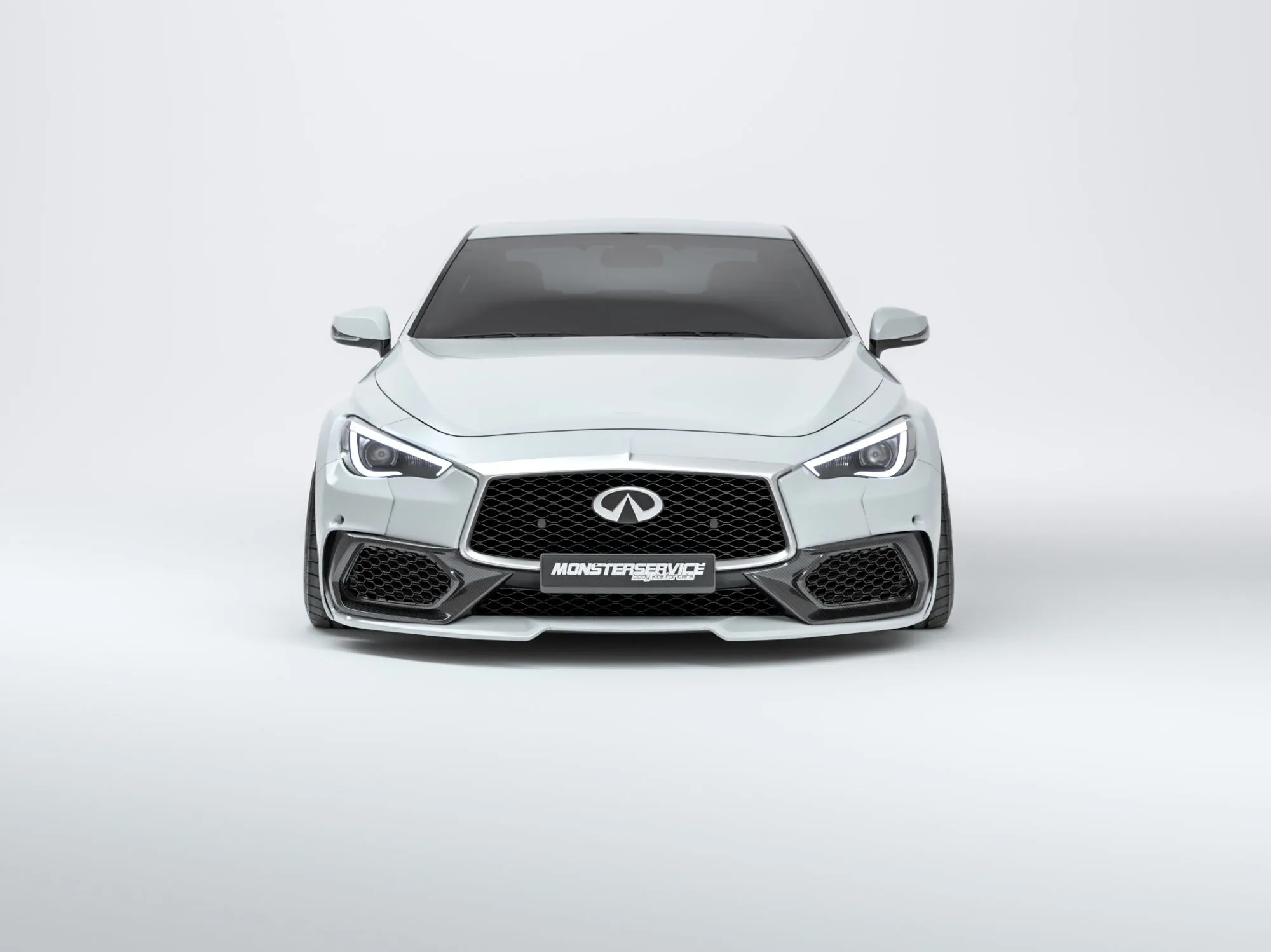 Front lip for Infiniti Q60 2016-2022. An excellent product that we developed specifically to complement the boring design of the OEM front bumper. Best deal on the market!