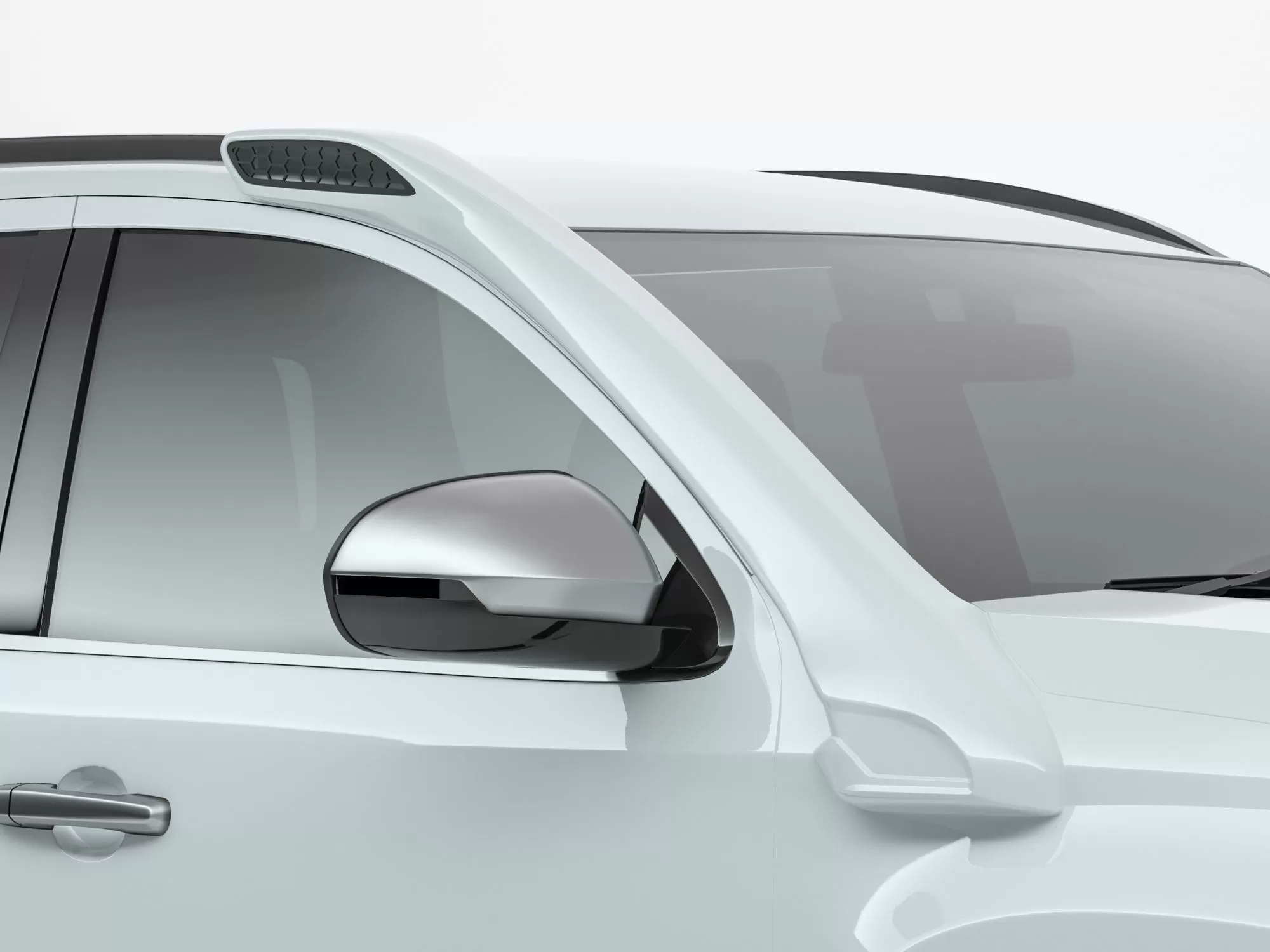 Air intake is carried out from the side of the snorkel, which allows you to operate the car in the conditions of sand, snow and water. And the shape of the snorkel allows you to easily install an expedition roof rack. All this is tested by our customers from all corners of the globe for more than 5 years of operation on different cars.