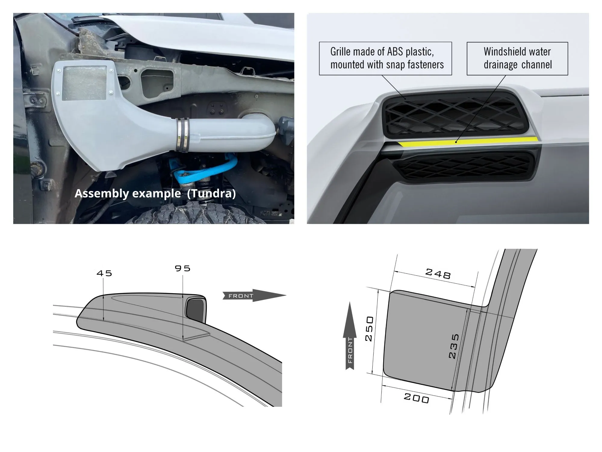 - 2 ABS plastic grilles (snap-fit)