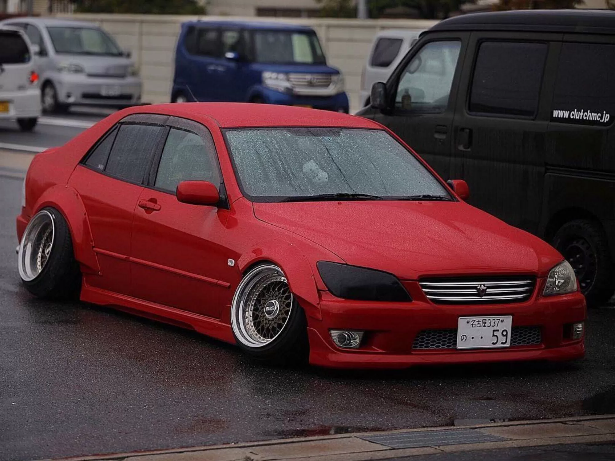 In the photos of Toyota Altezza, the flares are installed without a cut on the door - this is just the desire of the owner, you can cut the part without any problems so that your doors open.